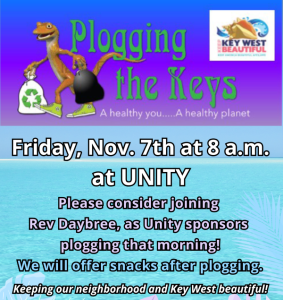 Plogging in the Keys at Unity – 8 am on Friday, November. 7th