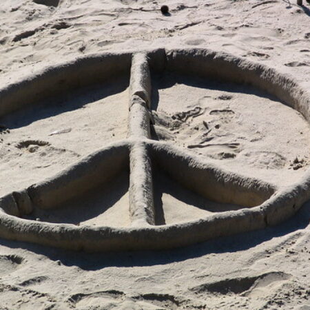 Join us at Higgs Beach near the White Street Pier on Saturday, April 16th, (the day before Easter) at 9 AM to create a large Peace Sign Sand Sculpture.